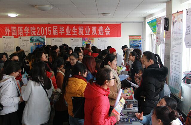 1月10日,外国语学院在1号教学楼举办了2015届毕业生就业双选会,近40家企业和外国语学院2015届近500名应届毕业生参加了此次招聘。
