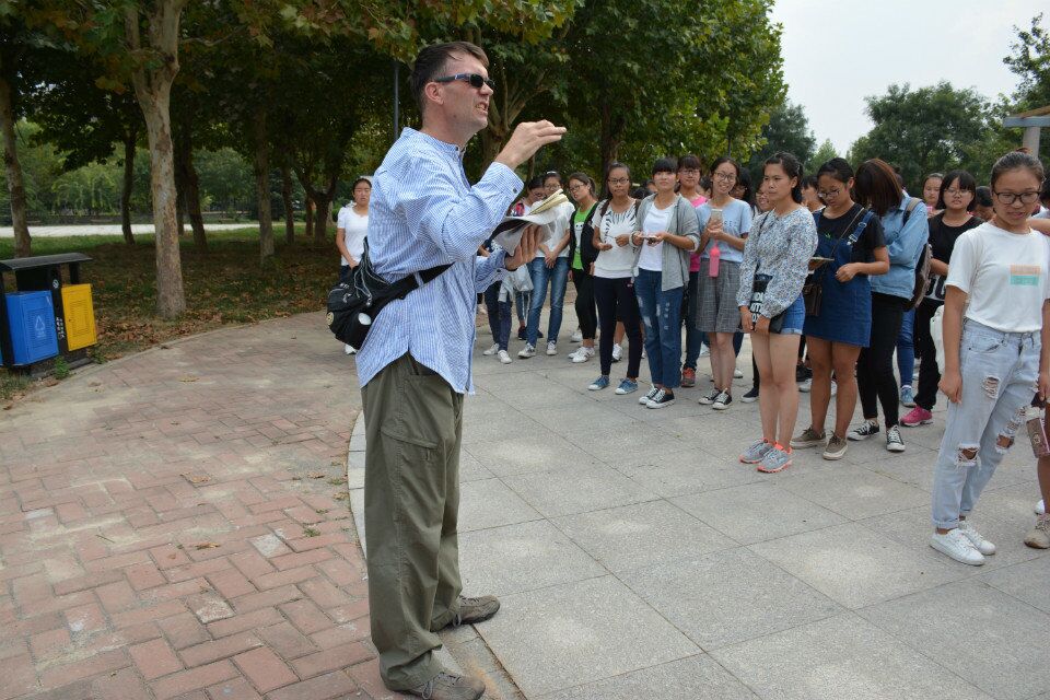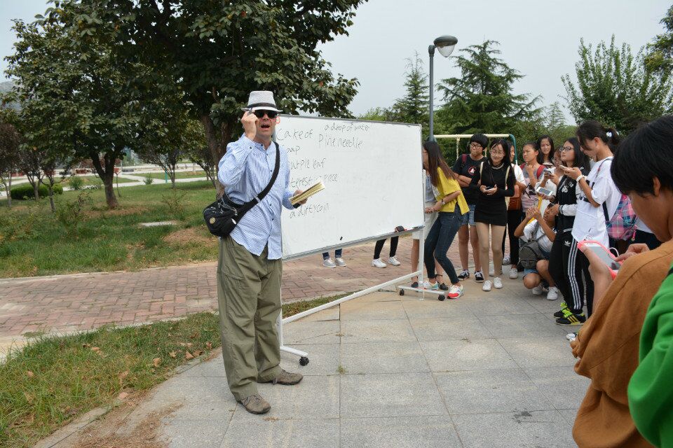 活动开始前,巾帼广场西侧外语角已经吸引了一大批英语爱好者。在外教Ben的带领下,同学们一起做寻宝游戏,在学习英语的同时还发现了我们经常忽略的自然现象和规律。寻宝活动之后,Ben又带着大家分小组比赛练习英文绕口令,考验同学们的团队合作意识。最后环节,Ben和大家热烈互动,对于同学们提出的关于英国文化和英语学习的问题,他知无不尽,耐心解答,Ben还就英语角的活动情况与大家交流讨论。