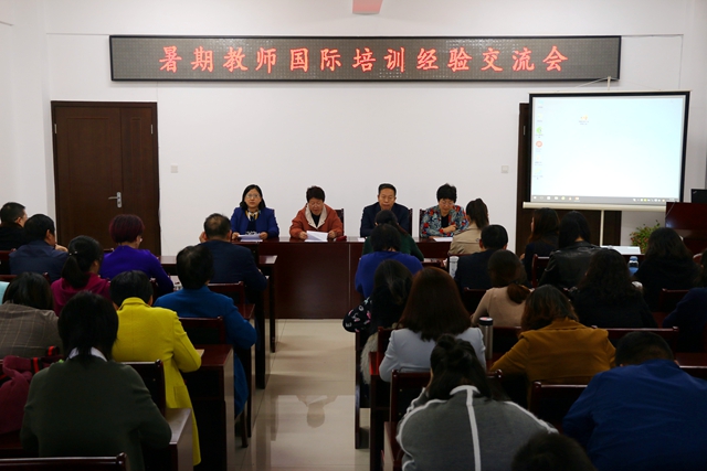 10月19日下午,在校办公楼第四会议室召开了2017年暑期教师国际培训经验交流会。我校盛国军校长、人事处屈玉霞处长、国际交流合作处崔晓红处长出席会议并讲话。外国语学院赵淑容副院长汇报了赴澳研修学习的总体情况,两位教师代表分别总结了在研修中的收获和感想。各院部主要负责人及教研室主任参加会议。