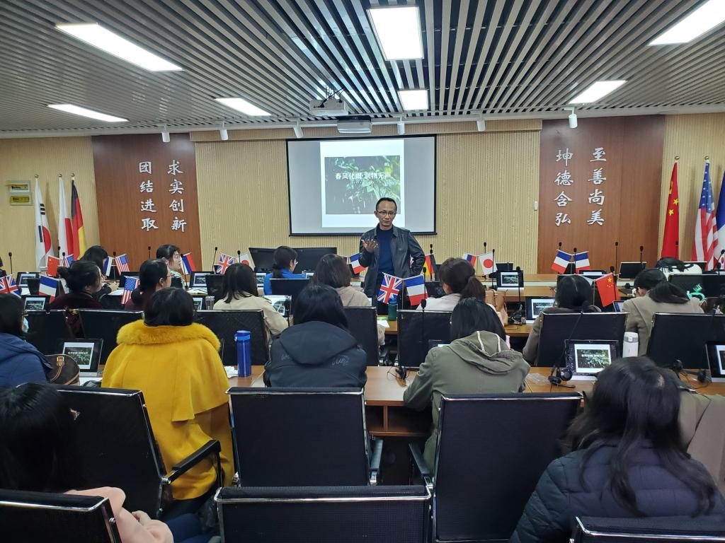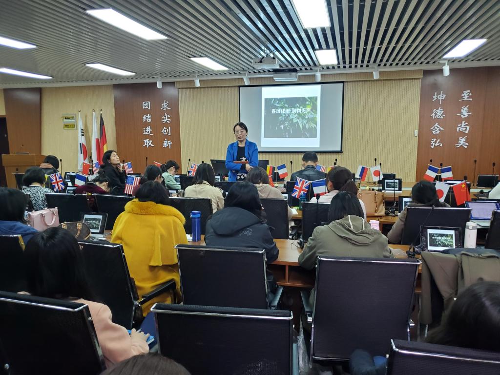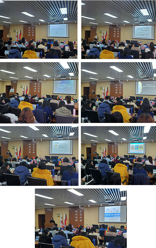 英语专业吕婷老师分析了学生大学四年的心理和学习状态,指出了不同阶段专业育人的切入点,体现了以学生为中心、立足学生实际进行育人的理念;日语专业张璐璟老师分享了日语专业思政如何开展及日语课程思政如何开展,提出从中日文化对比出发进行思政导向的方法;俄语专业尹杰杰博士以《俄罗斯文学》课程为例,具体地展现了该课程的教学设计理念:商务英语专业赵永霞老师以《商英翻译综合实践》课程为例,生动地指出课程思政并非说教,而是源于课程素材;大学英语教研室徐艳秋老师就大学英语课程思政的必要性和可行性做了细致的分享;应用韩语专业程冰老师介绍了课程思政三步法的优秀做法,即确定理念、构建体系、融入教学;应用西班牙语专业王丽兴老师分享了个人实际课程思政探索的动机、经历、结果及反思,列举了课程思政的十大误区。