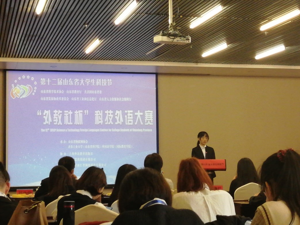 11月14日,第12届“外教社杯”科技外语大赛在风光旖旎的园博园畔举行。来自济南大学、山东财经大学、山东农业大学、齐鲁工业大学等30所山东地区高校的40余位选手参与比赛。我校外国语学院日语专业2018级本科生李颖同学凭着扎实的专业知识和优秀的临场表现获得大赛日语组三等奖。