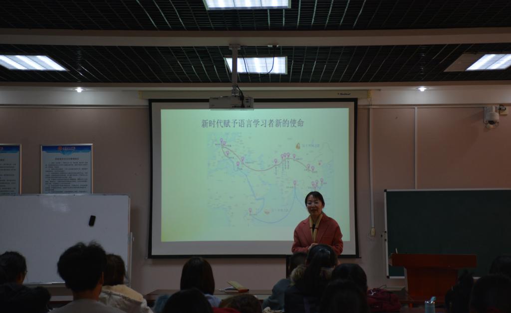 院长赵淑容教授以“外语人的初心与使命”为主题。讲座以新时代赋予语言学习者新的使命为导入,带领学生从学习党的基本知识和提高英语学习者的政治素养两个方面展开。通过他是谁-党的性质,为了谁-党的宗旨和奋斗目标,怎么做-指导思想与基本路线来帮助学生梳理党的基本知识。通过“十四五”经济社会发展目标、实行高水平对外开放、提高国家文化软实力等阐述提高英语学习者政治素养的重要性。讲座以中英文对照的方式,讲解关键词、重点句的翻译方法,并指出易出错的地方,帮助学生提高英语学习和翻译水平。同时用名言警句来督促提醒学生珍惜时间,把握机会,刻苦学习,做具有“国际视野 中国情怀 坚定信念 扎实能力”的新时代青年。