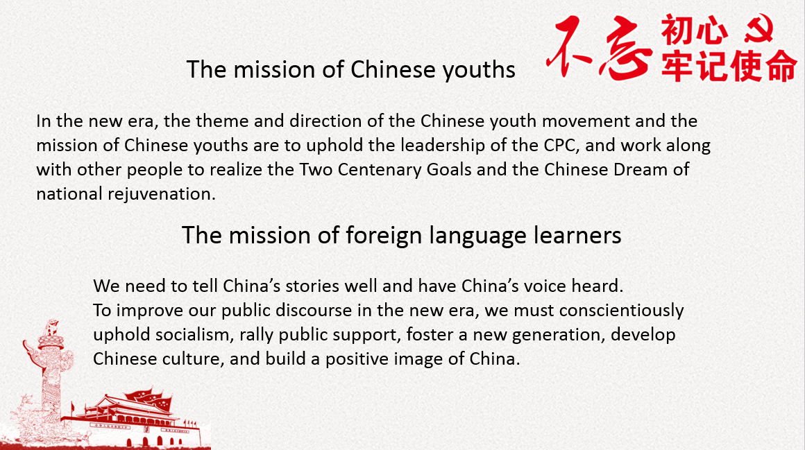 此次系列党课,把党建工作与师生发展,外语教学与思政育人进行了紧密结合,引导学生更好的学习习总书记的科学思维和宽广视野,打造具有语言特色的思政工作模式,培养“爱祖国 知世界 通专业 高素质”的复合型人才。学院也将以此为基础,探索更加长效的党建做法,担负起讲好中国故事、传播中国声音的伟大使命。