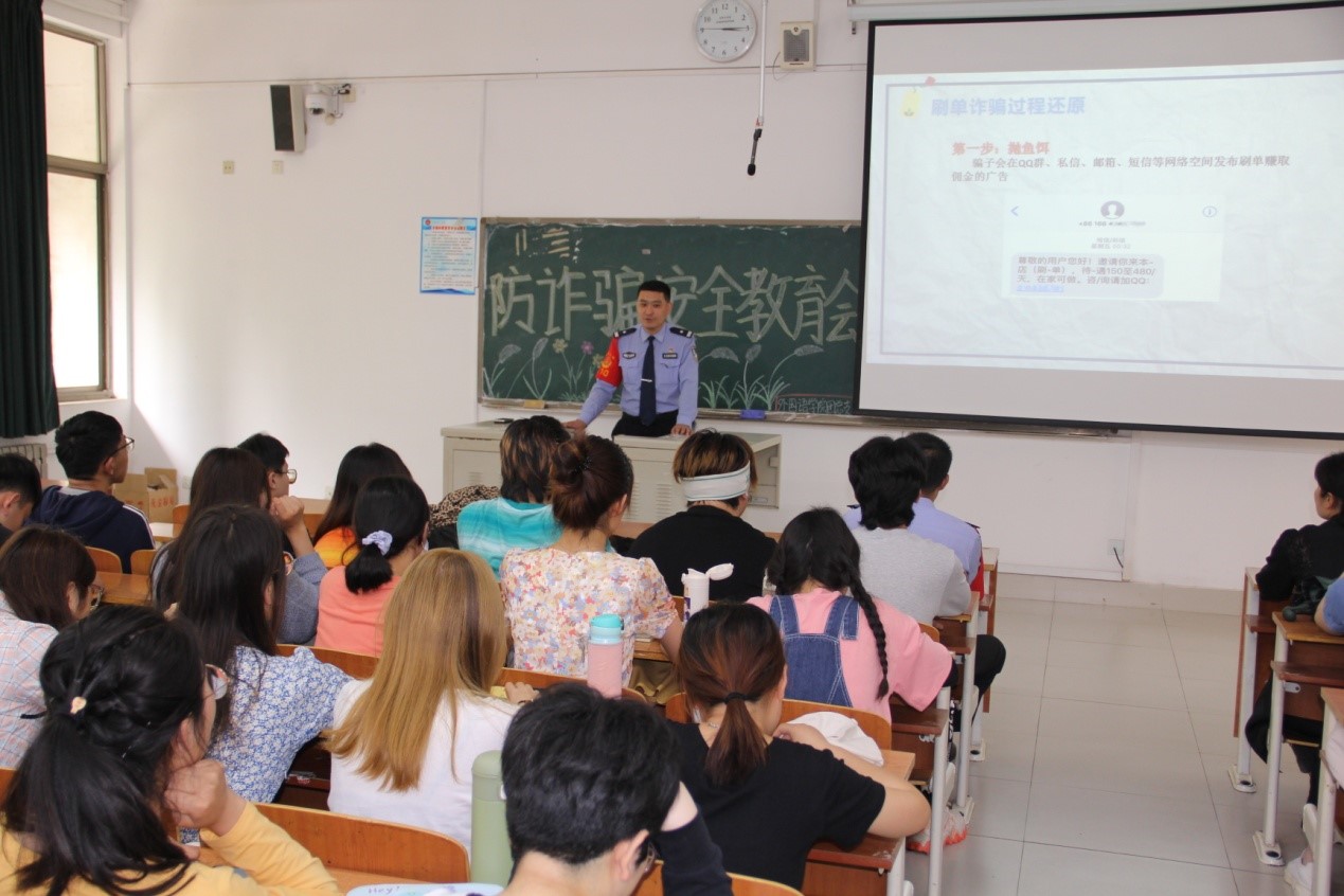 毕警官通过对电信诈骗、校园贷、套路贷等典型案件分析,围绕大学生的心理特征以及骗子的诈骗手段进行深入浅出的讲解,生动形象地揭示了骗子行骗的常用伎俩并传授了“防诈骗秘籍”。毕警官提到大学生群体涉世未深,疏于防范,近年来已经成为遭受电信诈骗的高发人群,学习一定的防范诈骗的基本知识,提高防范诈骗的基本能力是非常有必要的。随后耿华强调我院高度重视防诈骗安全教育工作,要把网络诈骗防范工作纳入我院日常宣传工作中,切实加大宣传力度,有重点、有节奏地持续深入开展,做到“人人提醒、时时防范”,确保有效预防,筑牢防网络诈骗的安全“防火墙”。