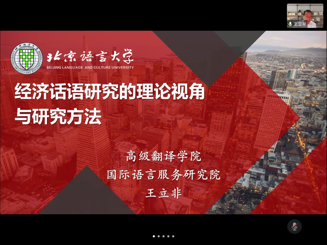 6月1日晚,应科研处、外国语学院邀请,北京语言大学高级翻译学院教授、博士生导师王立非教授通过腾讯会议做了题为“经济话语研究的理论视角与研究方法”的学术讲座。本次讲座由外国语学院院长赵淑容主持,科研处教师、外国语学院全体教师以及来自北京外国语大学、山东大学、湖南大学、山东财经大学等多所高校的教师参加了此次线上讲座。