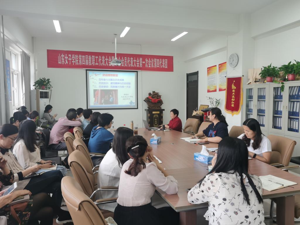 李慧芬教授从百年奋斗主题及历史成就、建党精神与历史经验、民族复兴与统一大业三个方面进行讲话精神的阐述,讲述中纵观历史长河,举目未来之路,又看现及之况,把习近平总书记“七一”重要讲话精神讲深讲透,讲准讲活。李教授的精彩讲述博得了阵阵掌声。