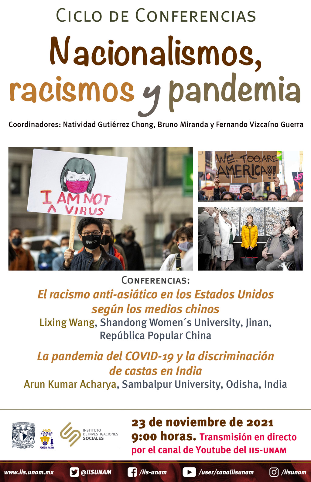 11月23日,由墨西哥国立自治大学(National Autonomous University of Mexico)社会研究院主办的“Nationalisms, racism and pandemic”(疫情、民族主义与种族主义)系列国际学术会议第三次会议通过在线方式顺利举行。该系列会议邀请了墨西哥、巴西、西班牙、印度等国的研究学者就疫情以来民族主义和种族主义抬头的现象进行研讨。本次会议由墨西哥国立自治大学社会研究院Natividad Gutiérrez Chong教授主持,通过学校官方Youtube账号面向全球全程直播。