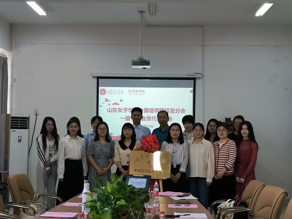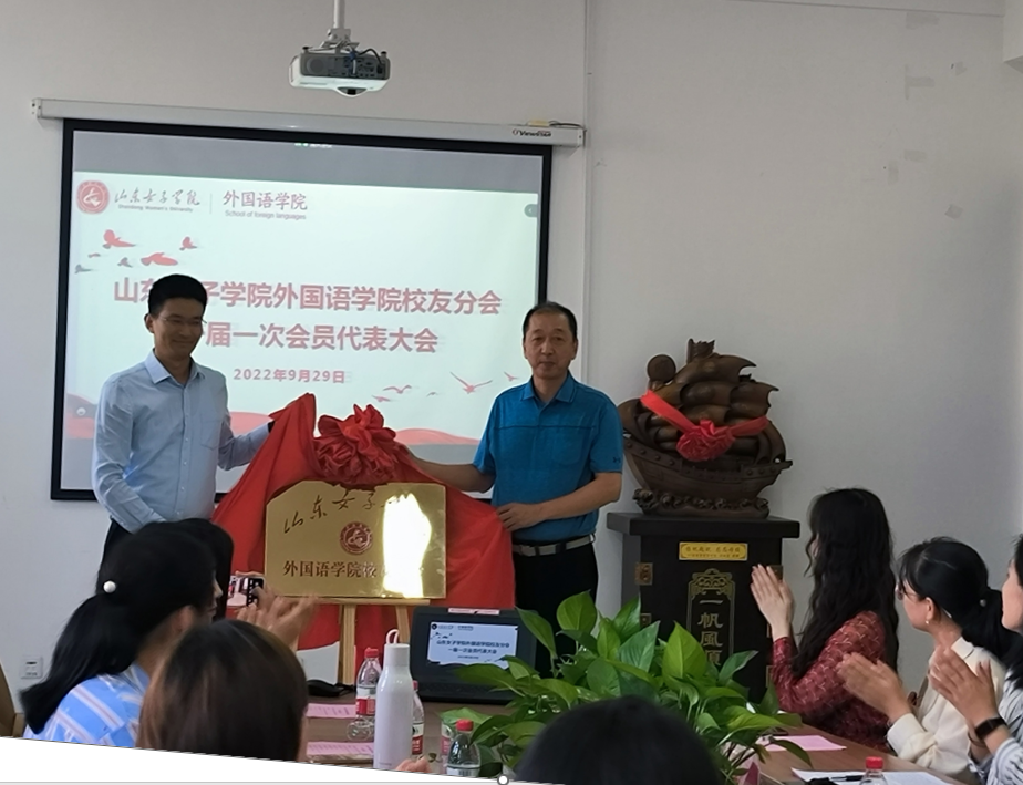 会上,学校党委巡查工作领导小组办公室巡查专员、学校校友会副会长与校友代表共同为“山东女子学院外国语学院校友分会”揭牌。