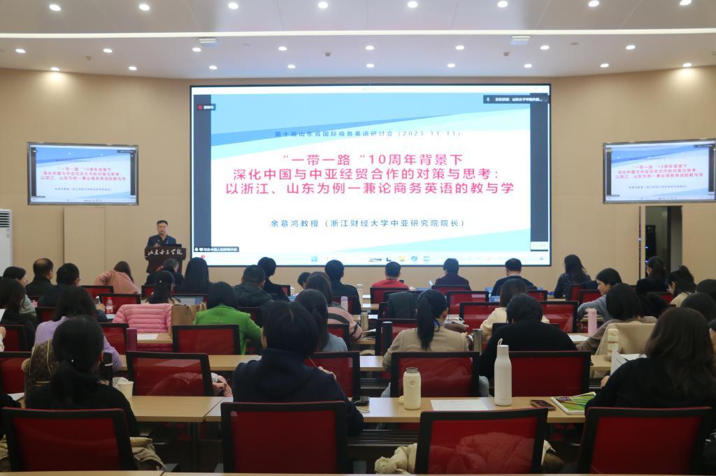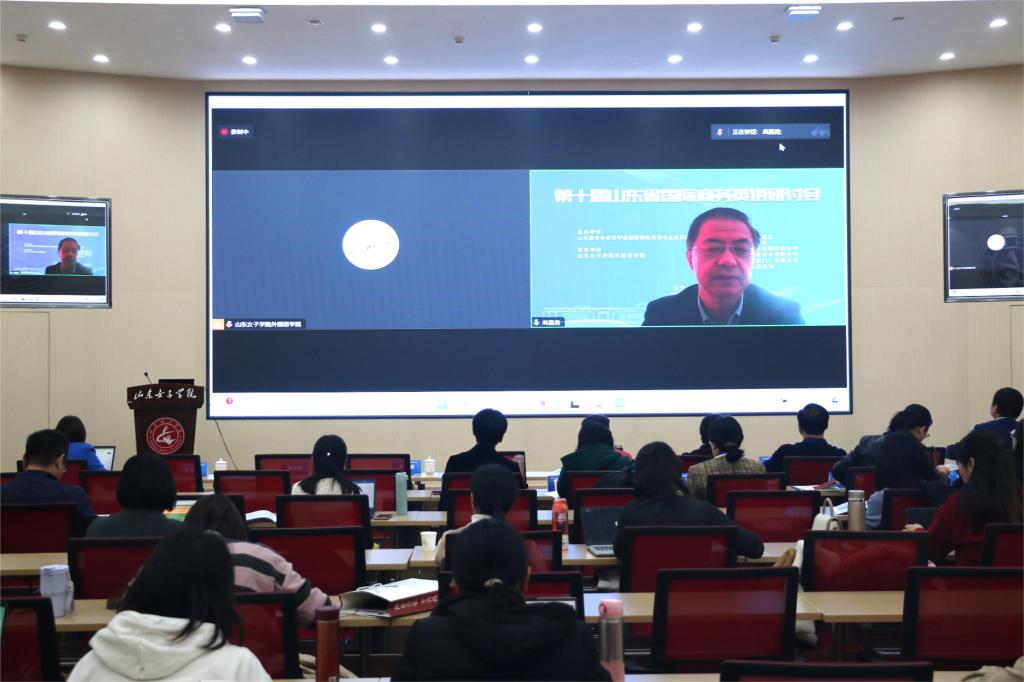 本次研讨会的主题为“数智时代商务英语专业内涵式建设与高质量发展”。来自山东中日韩产业研究院、中国石油大学(华东)、香港理工大学、浙江财经大学、天津外国语大学、山东财经大学、曲阜师范大学、山东工商学院和我校的8位专家做了主旨发言。
