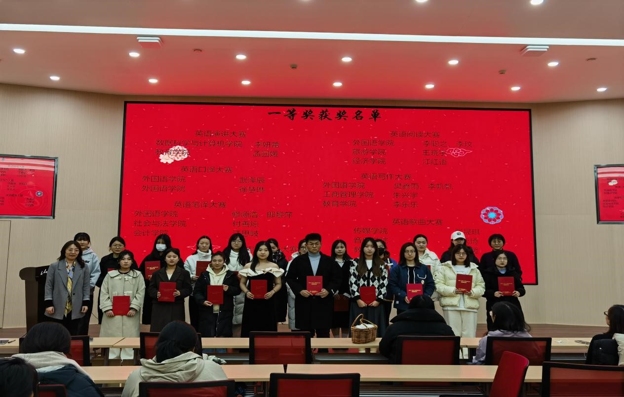 本次活动表彰了在2023年度在英语演讲、写作、阅读、口译、笔译、配音、歌曲、词汇等九项大赛中获得优异成绩的学生、并给获得一、二、三等奖的学生代表颁发了证书与奖品。