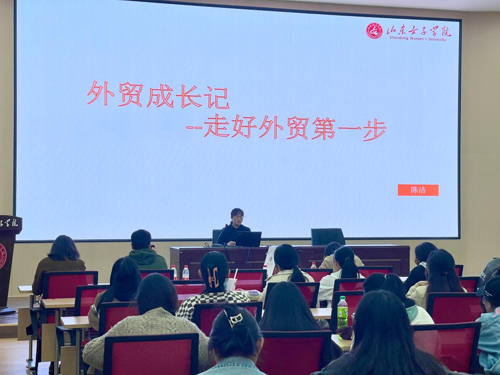 在此次开班仪式上,实验班邀请了济南华富锻造股份有限公司业务主管陈洁为与会学员做了题为“外贸成长记——走好外贸第一步”的主题讲座。陈主管结合自己十年的外贸经验,从外贸基本流程、从事外贸行业的益处、初涉外贸的注意事项和建议等方面进行了详细介绍,同时分享了自己的时间管理表和客户管理表。问答环节陈主管以学姐身份给学弟学妹们提出了专业学习的中肯建议。