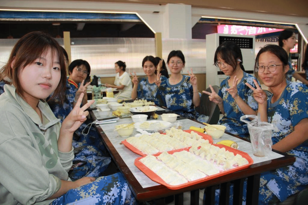 “饺”你一起情深意长。包饺子环节中,不光有老师的现场指导,更有花样饺子的视频教学,学生们宿舍一组、班级一桌,在欢声笑语、相互打趣间熟络了起来,在一捏一挤、一快一慢中种下宿舍小家、班级为家、女院大家的种子。