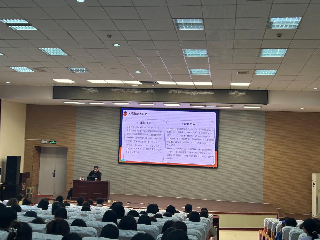 魏天兵经理基于多年行业实践经验,围绕如何高效运用 AI 进行翻译质量检查,从四个关键维度展开深入分享,具体涵盖 AI 质检基础知识、推理大模型在质检流程中的应用、具体操作步骤及注意事项。讲座内容详实丰富、逻辑条理清晰,让在场师生对借助 AI 提升翻译质量有了更为深刻的认知,为相关翻译实践与研究带来新的思路与方法。