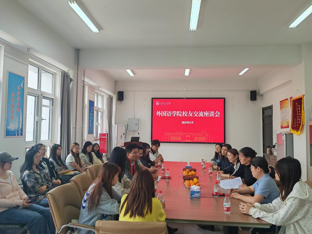 学在外院,铭记谆谆教诲;行至四方,反哺拳拳深情。5月8日,外国语学院校友职业规划指导暨校友交流座谈会在博雅楼A403召开,特邀2025届优秀校友分享就业创业经验。学院班子成员、教师代表、学生代表参加了会议。