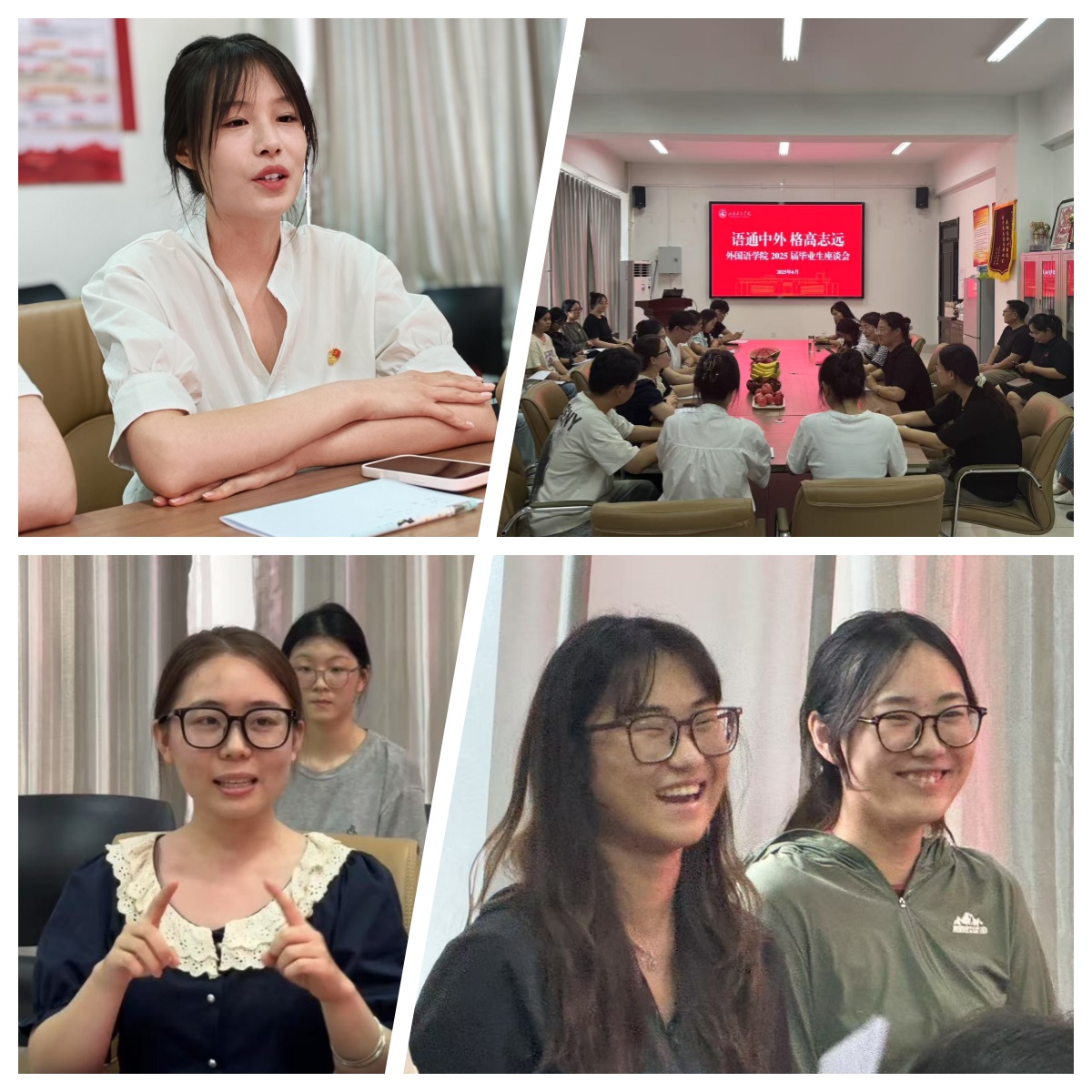 6月25日,外国语学院2025届毕业生代表座谈会暨行前思政课在博雅楼A403会议室举办。学院党委班子、教研室主任和教师代表、全体辅导员与25名2025届本、专科毕业生代表亲切交流,倾听感悟、畅谈未来。座谈会由学院党委副书记主持。