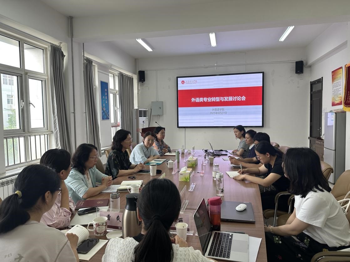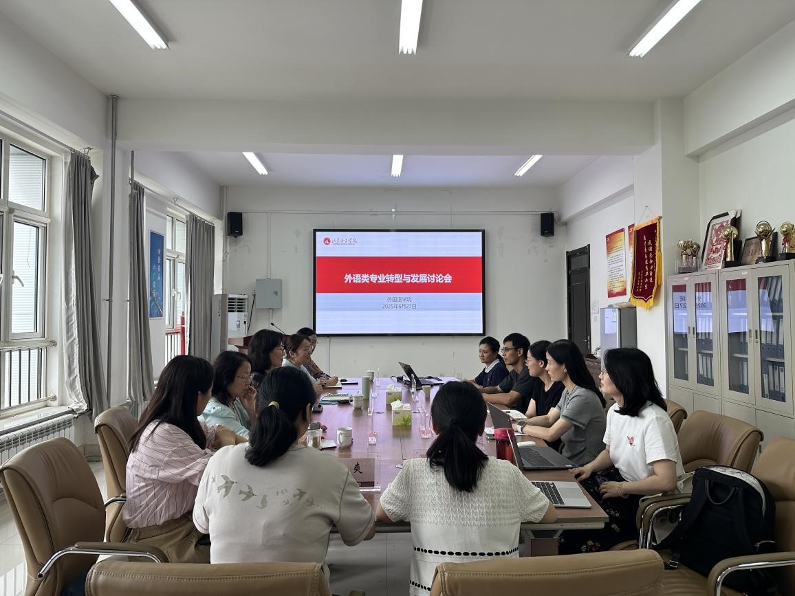 6月27日下午,外国语学院在博雅楼会议室举办“外语类专业转型与发展”研讨会。副校长刘恩允、教务处、外国语学院负责人及各专业教研室主任、骨干教师齐聚一堂,共同探索人工智能时代外语类专业的转型与发展新路径。