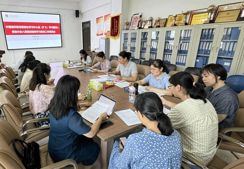 7月3日下午,外国语学院理论学习中心组(扩大)学习暨深入贯彻中央八项规定精神学习教育推进会在博雅楼A403会议室召开,理论学习中心组成员、新一届党支部委员参加了会议。