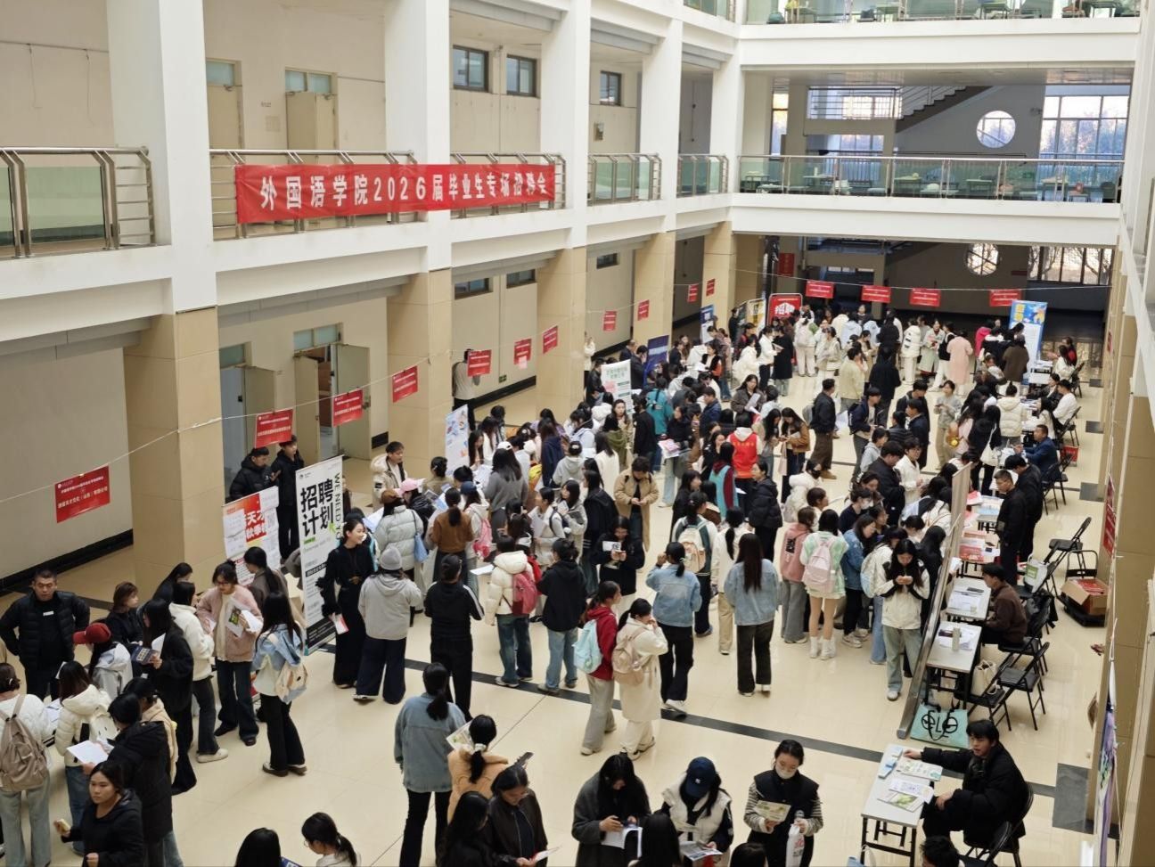 为扎实推进2026届毕业生就业工作,积极搭建校企供需对接平台,11月13日下午,外国语学院在博文楼一楼大厅成功举办2026届外语类毕业生专场招聘会。