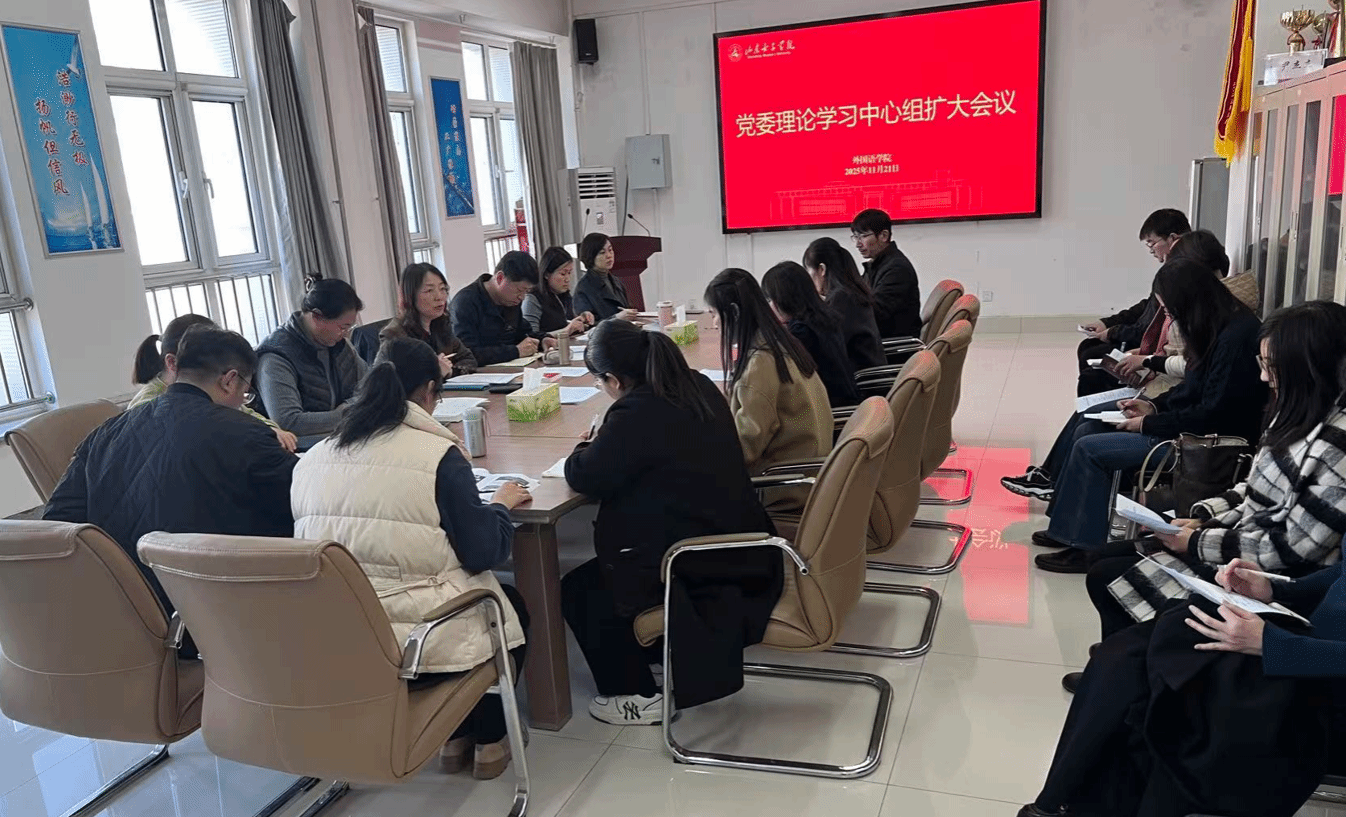 11月21日下午,外国语学院党委理论学习中心组召开扩大会议,专题学习研讨中国共产党第二十届中央委员会第四次全体会议精神。中心组成员参加学习,学院科级干部、各基层党支部书记和委员、辅导员列席,学校党委委员、宣传部部长王鲁旁听学习。