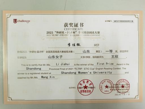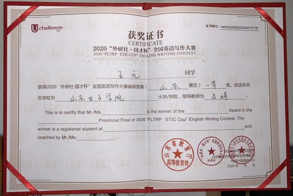 英语专业学生获得全国口译大赛山东省赛区一等奖、全国口译大赛最佳译员风采奖、外研社全国英语写作大赛山东省一等奖