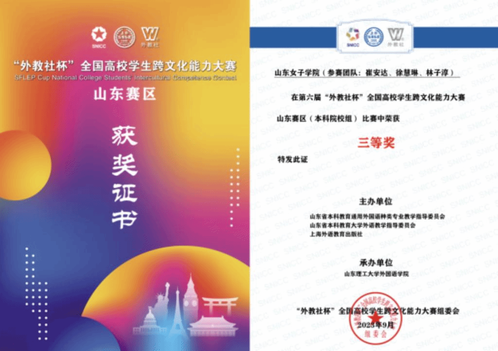 “外教社杯”全国高校学生跨文化能力大赛省级三等奖