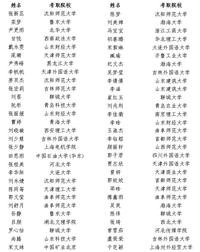 英语专业学生以扎实的英语水平、踏实的学习态度、积极进取的学习精神,在历年的考研中取得优异的成绩,从女院英语专业走向广阔的人生舞台。以下为部分名单: