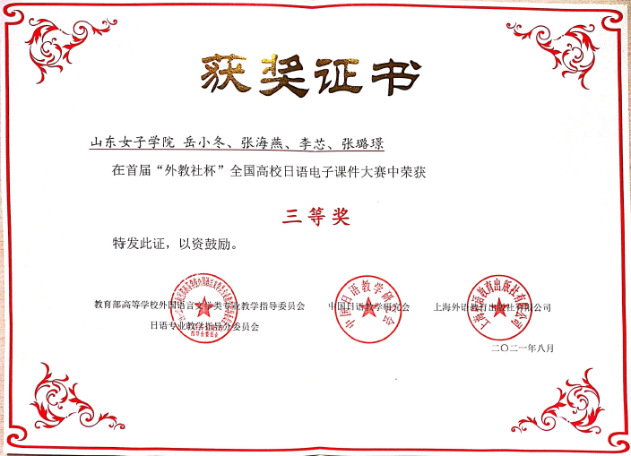 日语专业教师在首届外教社全国电子课件大赛中荣获团体三等奖