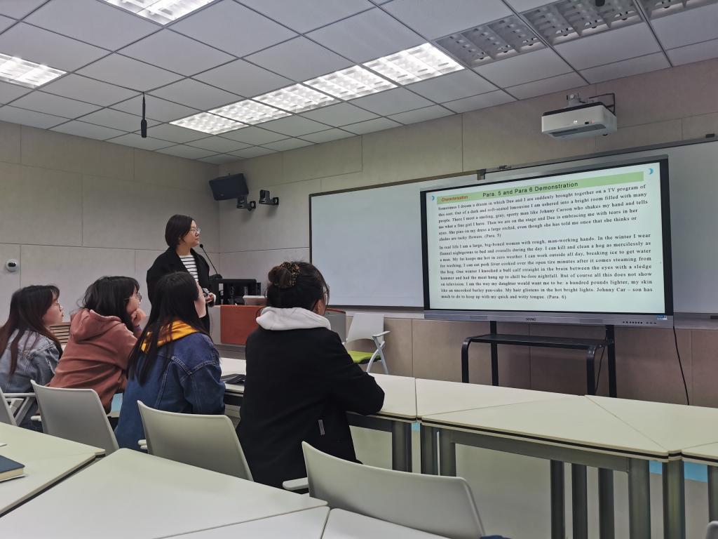根据省教育厅高教处通知要求,为提高教师教学能力与教学水平,助力教学质量提升,外国语学院于3月30日下午在博雅楼B504录播室举行“外教社杯”全国高校外语教学大赛山东分赛区初赛,各教研室选送的青年教师参加此次比赛,部分青年骨干教师现场观摩学习。