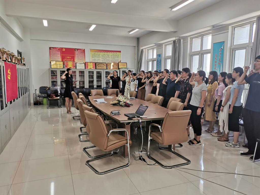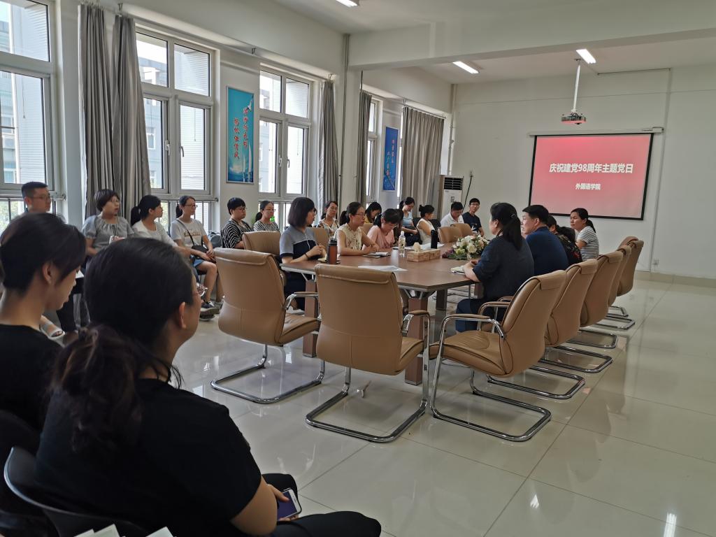 2019年7月1日,在七一党的生日这个特殊的时刻,外国语学院党总支召开庆祝建党98周年主题党日活动,活动由党总支书记董玉新主持,学院全体教工党员参加。