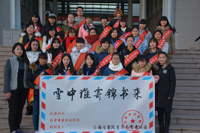 12月3日,青年志愿者协会外国语学院分会举办了“雪中谁寄锦书来”活动,分会全体成员参加了此次活动。在为期5天的活动中,同学们将学校无人认领的信件交回到收件人手中。