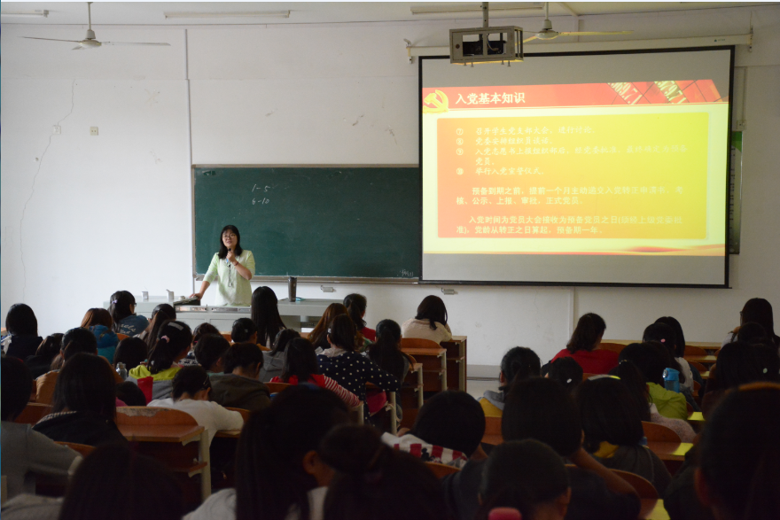 10月8日下午,我院开展了新生党课普及教育,由学院学生党支部书记刘瑶青老师主讲,我院2015级全体新生参加了本次党课。
