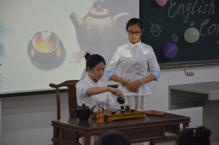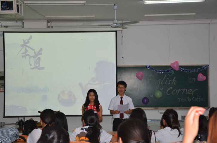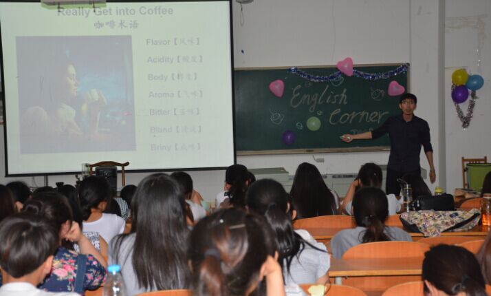 6月14日晚6:00,本学期第十一期外语角活动在2号教学楼110教室成功举办。本期活动主题为“中西文化对对碰之茶艺与咖啡”;活动现场“星光熠熠”,吸引了众多同学参加。