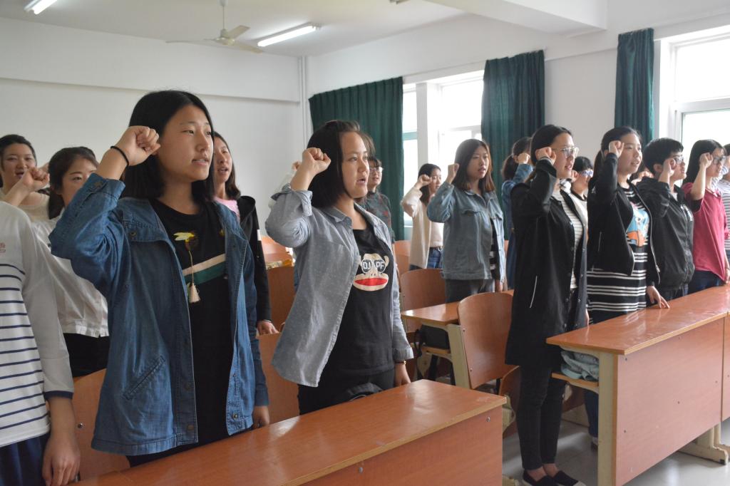 为纪念五四运动98周年,深入学习贯彻习近平总书记重要讲话精神,5月5日上午,外国语学院团总支在博学楼312教室开展“不忘初心跟党走—重温入团誓词”主题教育活动。2015级、2016级班长、团支书代表50余人参加了此次活动。