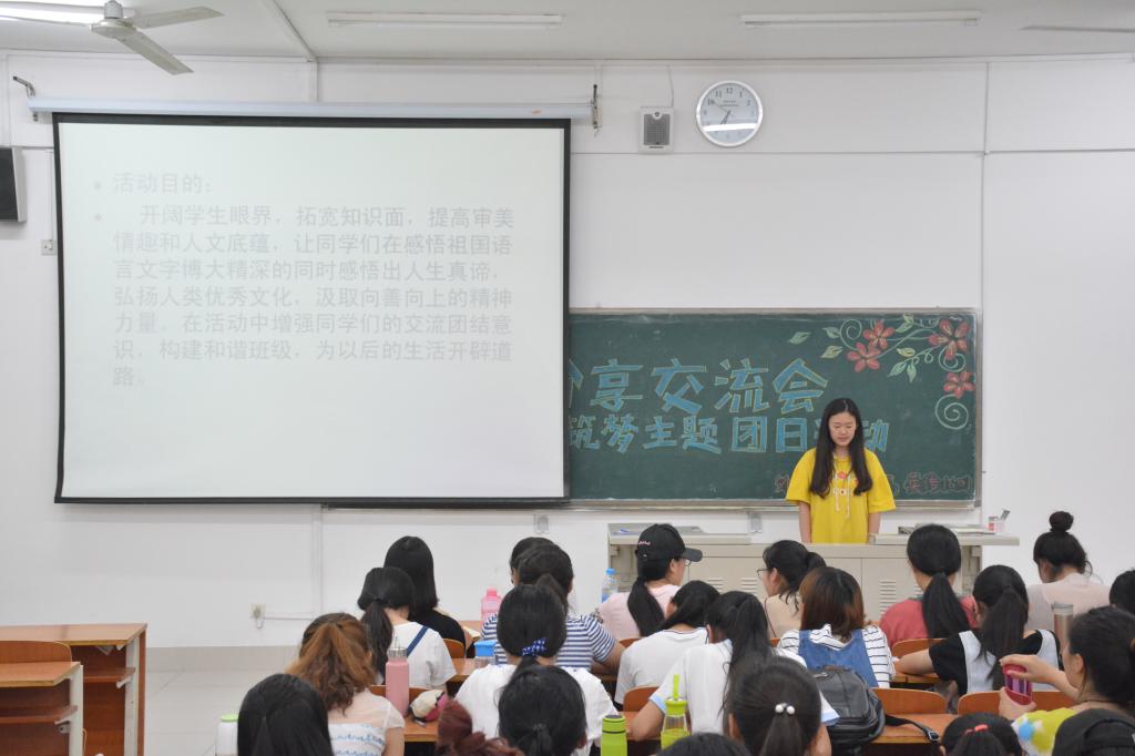 本次活动由英语1601团支书孙艺萍主持,以“读书分享交流会”为主题,目的在于督促全体成员多读书,读好书。全班同学共分为五个小组,以小组为单位参与活动。活动共设置五个环节,第一环节“你划我猜”,通过肢体语言或者英语向搭档表达单词意思,直到队友猜出单词。第二环节为读书汇报,各组成员以放映PPT的形式向同学们推荐英文书籍,表达流畅,讲解新颖的小组获胜。第三环节通过“你画我猜”向搭档展示书名,随后同学们在黑板上画出书名所述意思。第四环节是抢答环节,通过展示人物图片和影视剧图片抢答作家姓名和影视剧名。