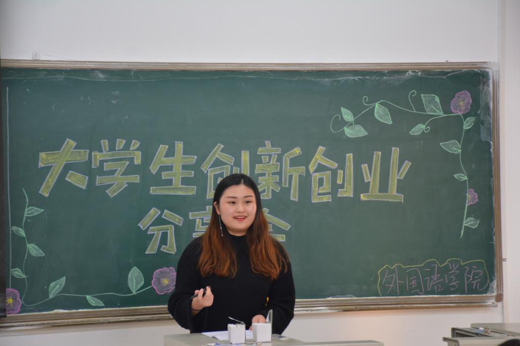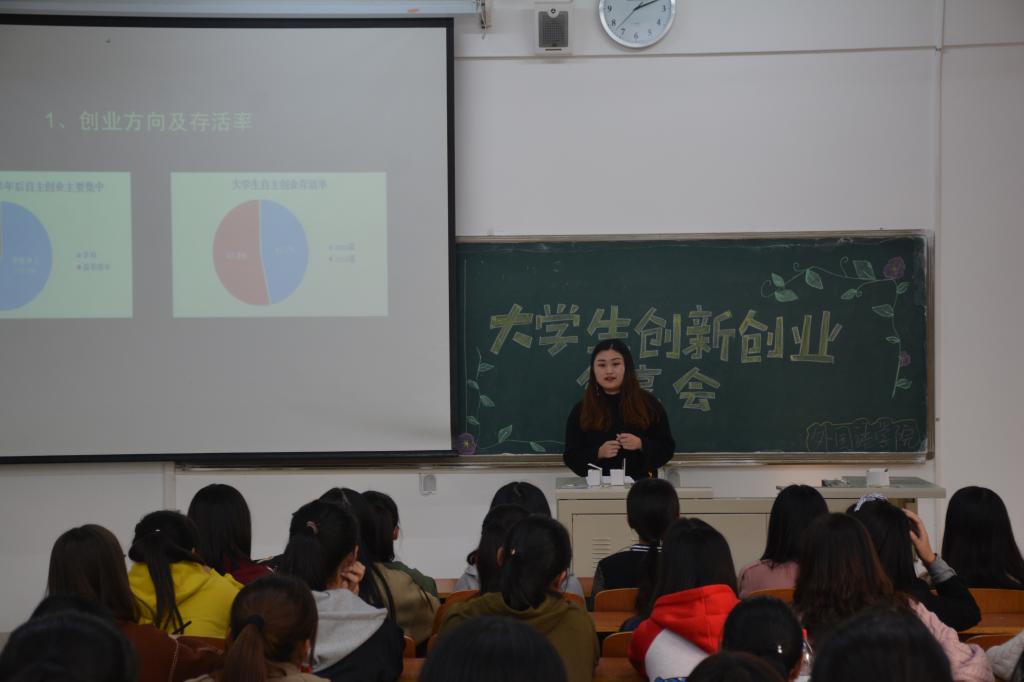11月2日下午,外国语学院于博文楼207教室开展大学生创新创业分享交流会,2015级商务英语专业学生赵思雨担任主讲人,2016级和2017级各班班委参加。