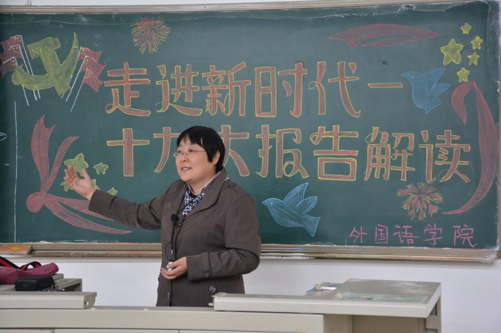 11月9日下午,外国语学院在博文楼207教室举办“走进新时代—十九大报告解读”讲座,特邀请学校基础部副教授王明芳老师担任主讲人,2017级近300名学生参加。