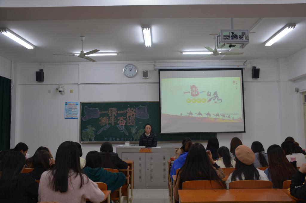 活动由团支部副书记支持,她围绕活动主题与同学们一起领略了“一带一路”的魅力。活动实行抢答积分制,围绕“新丝绸之路经济带”,通过问题带领同学们走进北京、俄罗斯、德国、北欧等各地。问到“什么是一带一路”时,同学们各抒己见,争抢作答,从大方面一带一路的形式、历史背景具体到“一带一路”所涉及的各个国家贸易往来类型等各个方面;关于“一带一路的精神”这个问题,同学们更是如探囊取物,将习总书记坚持以和平合作、开放包容、互学互鉴、互利共赢为核心的丝路精神熟记于心。接下来,主持人为大家播放“一带一路”上各个国家的短视频并邀请同学们向大家介绍自己熟悉的北欧美食,带同学们来一场短暂的“舌尖上的北欧”之旅,帮助同学们进一步了解“一带一路”。最后,主持人为获得总分最高者颁发纪念奖品,活动在愉快的氛围中结束。