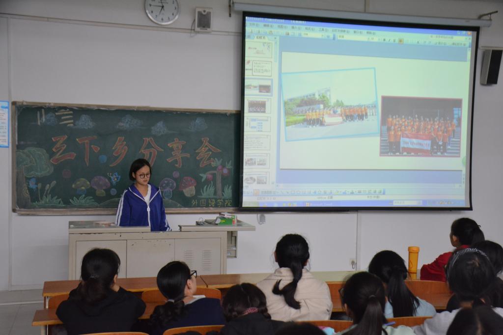 为总结暑期“三下乡”活动经验,分享活动成果,9月26日晚,外国语学院在博文楼204教室开展了“三下乡”分享交流会。2018年暑期“三下乡”社会实践团各队长为此次活动的主讲人,2018级全体班委参与其中。
