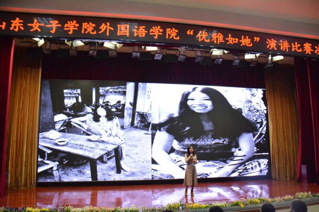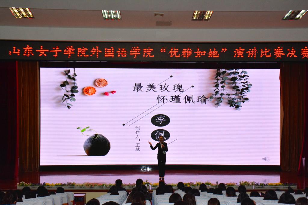 比赛伊始,每位选手独特的自我介绍视频和精彩激昂的舞蹈《军舞》拉开决赛的帷幕,此次比赛共分为三个环节。第一环节“言为优雅”,各参赛选手依次上场发表演讲,参赛者立足于各自心中的优雅女性,介绍了富有文化底蕴、独立思想品格的文人学者三毛、张爱玲、张幼仪,淡然从容的荧屏女神韩雪、董卿,以及被誉为“中科院最美的玫瑰”的李佩先生、“八女投江”抗日英雄冷云、“沂蒙母亲”的王焕于,她们的精神感染着在场所有的观众。此外各位参赛者呼吁新一代青年应秉承优雅女性精神,修于心而形于外,永不言弃、奋发向上,争做当代优雅大学生。第二环节“即兴演讲”,各位参赛选手通过抽签的方式选定主题,结合自身经历对“新时代新女性”、“慎独”、“中国传统文化”等提出自己的见解与感悟,不同的表达方式,各样的演说风格博得台下观众的阵阵掌声。最后,经过评审团公正的评判,本次比赛共有2名一等奖、3名二等奖、5名三等奖。