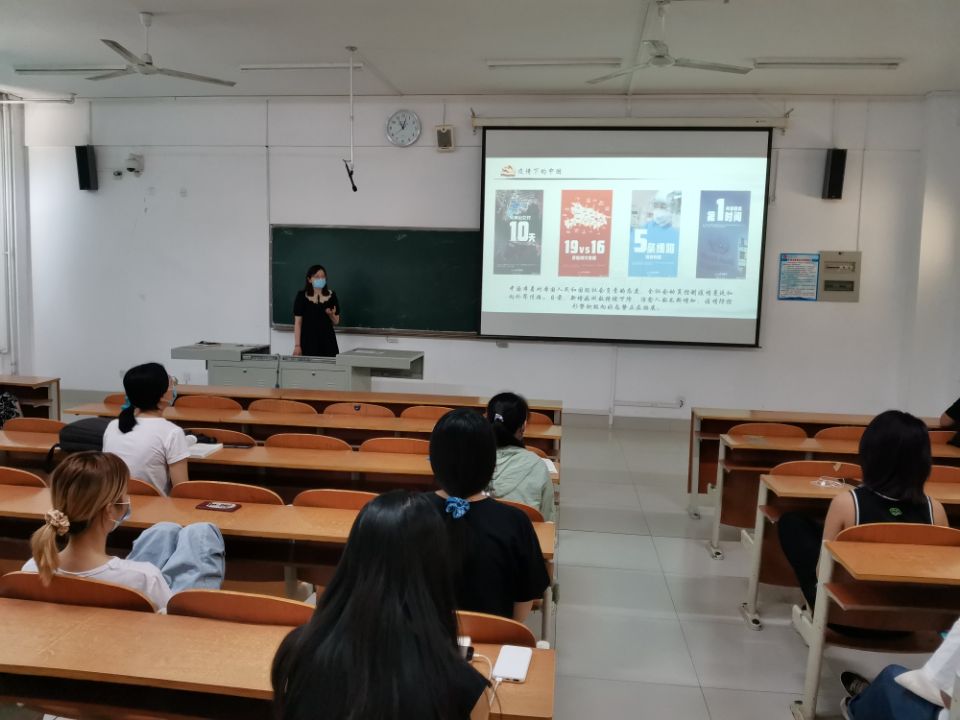 厚植爱国主义情怀,争做时代新青年,翟斐老师将共同抗击疫情斗争作为题材展开了生动的爱国主义教育,积极引导学生从疫情中汲取力量,增强责任感和使命感。同时呼吁学生向在抗疫战斗中做出突出贡献的90后00后新一代年轻人学习,在艰苦奋斗中砥砺意志品质,不惧风雨勇挑重担,承担起青年一代应有的责任与担当,让学生深刻认识到爱国主义的本质是坚持爱国和爱党、爱社会主义高度统一。最后,孟广磊老师向学生讲解了就业相关注意事项,现场详细解答了学生们的问题和困惑,鼓励大家积极就业,在适合自己的岗位发光发热,开始新的人生篇章。本次教育活动在老师们的贴心叮嘱和美好祝愿下完美结束。