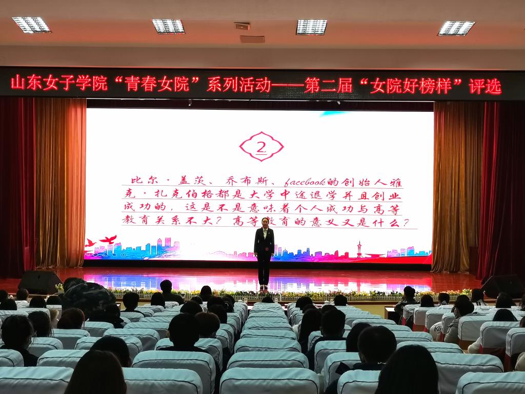 为深入学习并贯彻落实习近平总书记关于青年学生成长成才的重要思想建设,发现并大力培养大学生先进典范,发挥模范大学生的榜样示范作用。12月17日在图书馆C座二楼报告厅隆重召开了由我校团委主办、外国语学院团总支承办的“青春女院”之“女院好榜样”评选活动。出席本次活动的嘉宾有招生就业处处长任晓剑、团委书记苏婧、学生处副处长赵贵阳,外国语学院党总支副书记耿华以及来自各学院学生会主席团代表,此外还有140余位来自各学院的学生观众参与其中。
