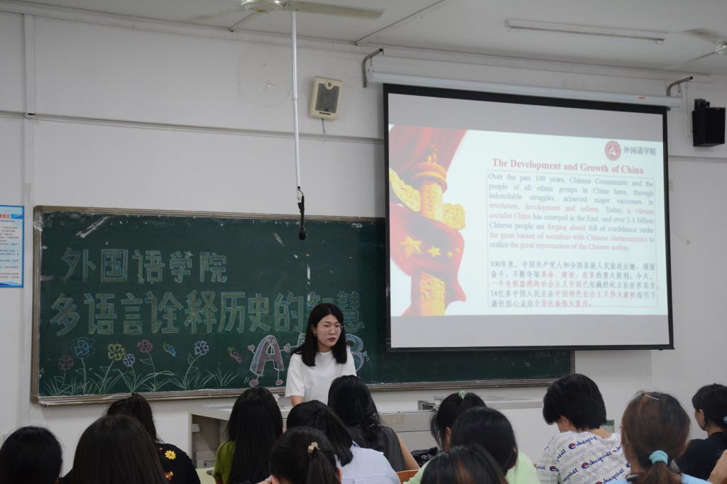 2021年是中国共产党成立100周年。为深入学习领会习近平总书记关于党史的重要论述,紧紧围绕学懂、弄通、做实党的创新理论,深刻铭记中国共产党百年奋斗的光辉历程,深刻认识中国共产党为国家和民族做出的伟大贡献,做到学史明理、学史增信、学史崇德、学史力行,6月24日,山东女子学院外国语学院开展“多语种诠释历史的智慧”系列党课。本次党课将思政教育与专业学习相结合,由英语、日语、韩语、俄语、西班牙语的优秀青年学子担任主讲,由5位专业党员教师给予指导,为大家呈现了一堂图文并茂、精彩纷呈的“多语言诠释历史的智慧”主题党课。课堂上内容精彩纷呈,气氛融洽活泼,同学们反响热烈,表示受益匪浅,收获颇丰。