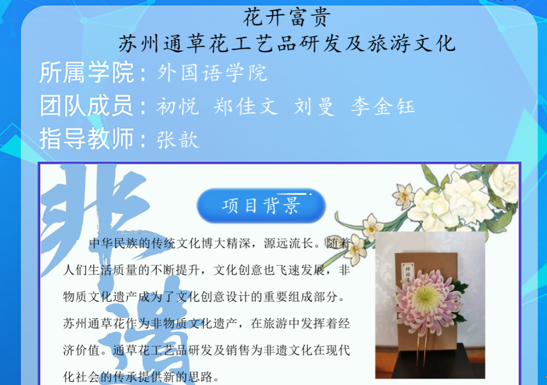 评委老师们进行客观公正的点评,从可行性、独特性、商业化、社会价值与意义等方面向各小组提问,提出改进建议,使项目更具竞争力。经学院选拔《花开富贵——苏州通草花工艺品研发及旅游文化》、《自然记录者--数字化探索黄河下游生态发展》、《智能化医疗服务》等队伍推荐晋级到校赛。