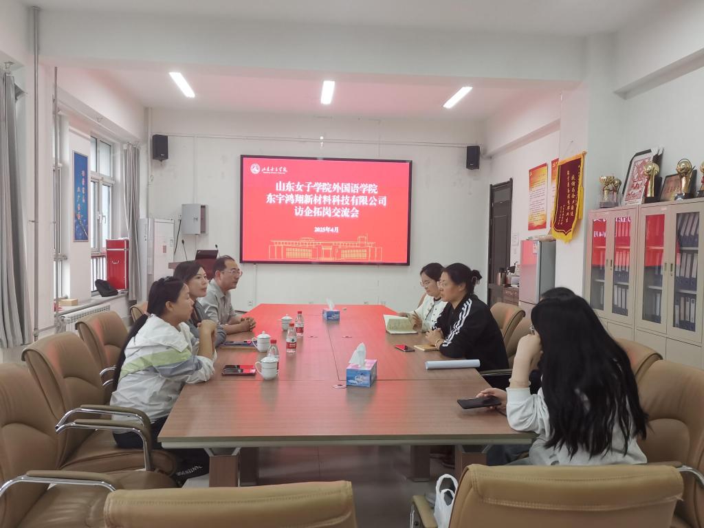 4月28日,外国语学院与东宇鸿翔新材料科技有限公司在博雅楼A403会议室座谈交流,为毕业生持续提供高质量的就业单位。