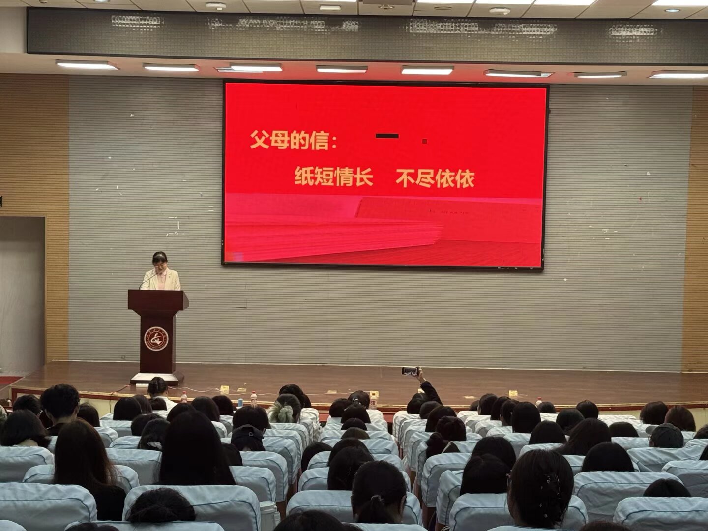 学院高度重视家校协同育人工作。在新生入学阶段,通过组织家长参与一次问卷调查、一场家长会、一次面对面交流、一次校史馆参观以及一次书信互动的“五个一”系列活动,全面夯实家校共育基础。典礼现场,父母们写满深情叮嘱与殷切期望的书信,成为最触动人心的礼物。此外,学院还特意为当天过生日的三名同学送上来自“家长”和全体师生的暖心祝福,现场歌声与掌声交织,温情洋溢。