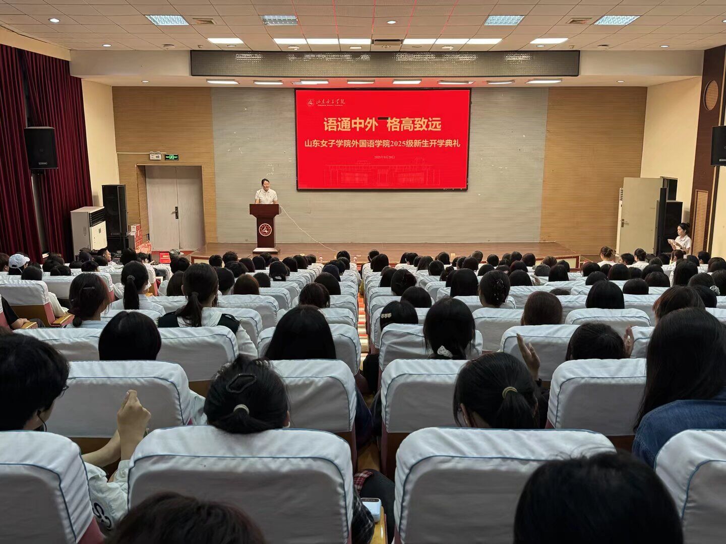 仪式在庄严而嘹亮的国歌声中正式拉开帷幕。学院院长代表全院师生致辞,围绕“语通中外启新程,格高致远向未来”的主题,勉励新生以语言为桥梁,在跨文化交流的广阔舞台上,积极讲述中国故事、女院故事与外语人的精彩篇章。师生代表分别从专业学习、竞赛赋能、实践锻炼等多个维度进行分享,启迪思维,凝聚共识,展现了奋发向上的精神风貌。