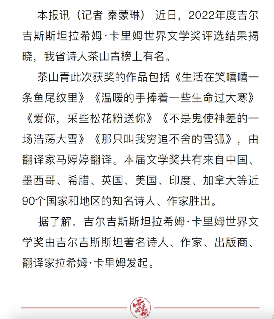 马婷婷老师的英译诗歌集助力我国诗人获得多项国际文学奖。