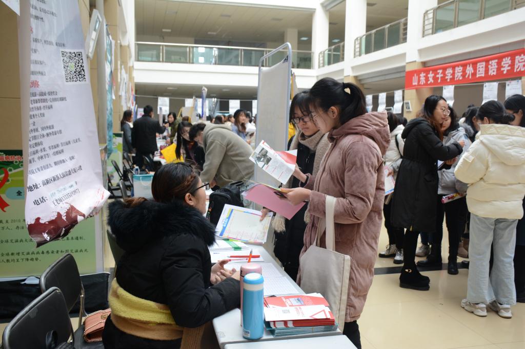 此次双选会共吸引70余家用人单位,包括济南大智教育、英尔外语、山东开泰集团有限公司等多家企业单位。行业种类齐全,含括教育、贸易、科技等多个领域;招聘语种多样,包括英语、俄语、西班牙语、日语等多个语种,为我院学子提供了广阔的选择空间。参加双选会的毕业生分批次有序入场,认真选看自己感兴趣并符合自身条件的单位,与招聘单位负责人进行现场交流,了解企业的具体情况。招聘现场秩序良好,气氛热烈,毕业生纷纷投出自己的应聘简历,主动了解用人单位的情况,部分表现突出的同学当场与企业签订协议,获得企业实习机会。