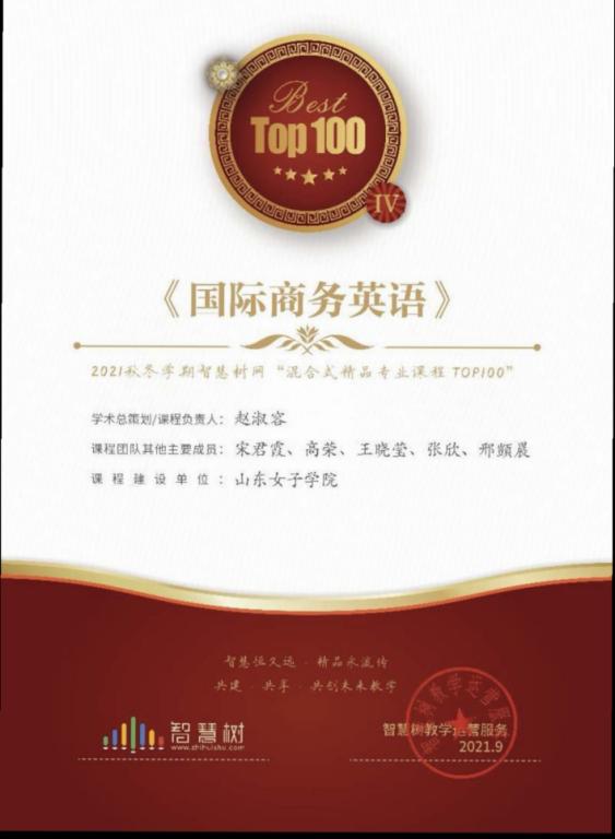 9.《国际商务英语》:智慧树网“混合式精品专业课程 TOP100”