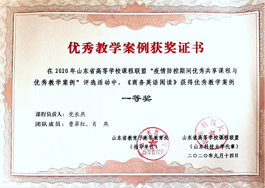 8.《商务英语阅读》:山东高校课程联盟优秀教学案例一等奖